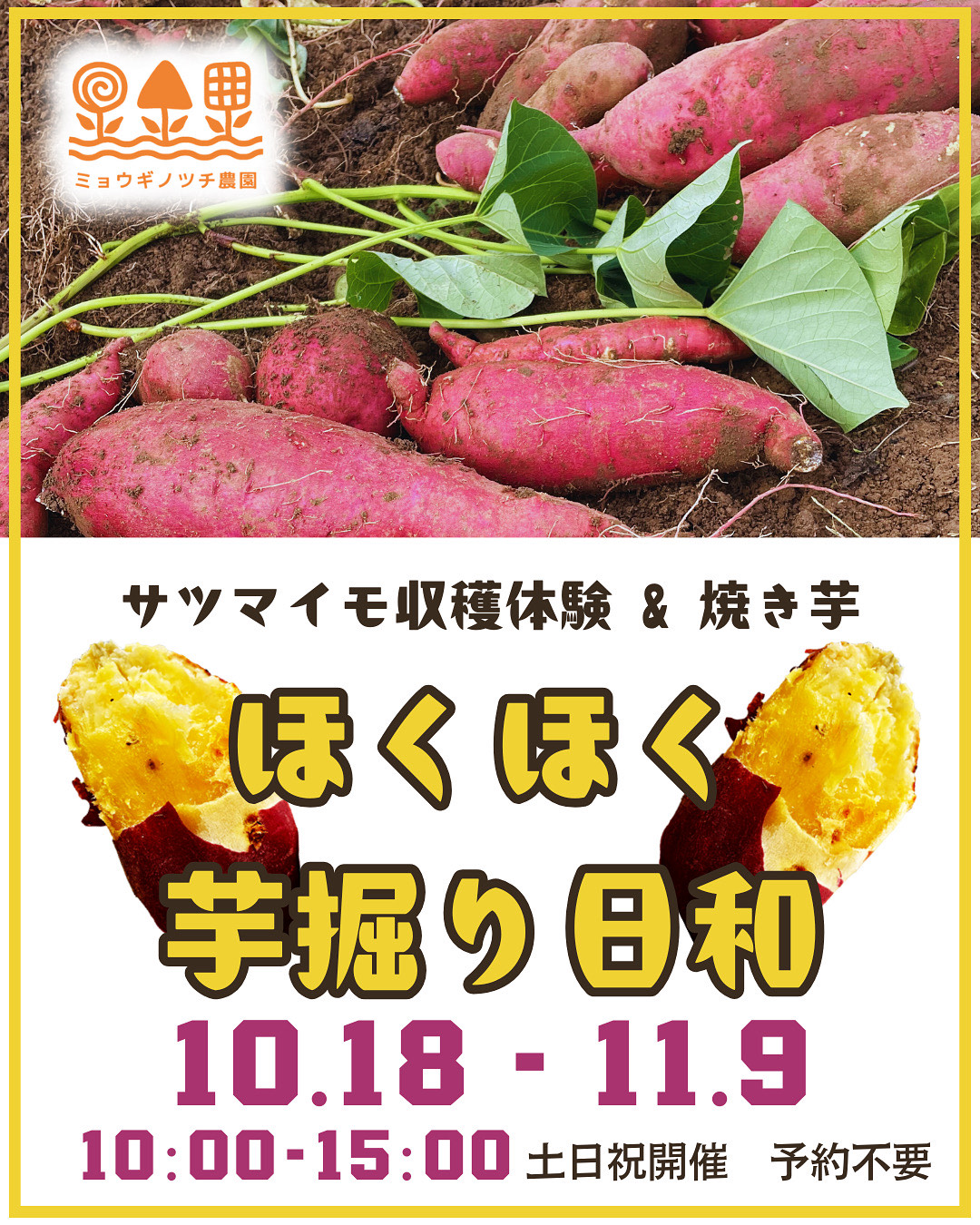 【2025/10/18(土)~11/9(日)】ほくほく芋掘り日和2025 開催のお知らせ(ミョウギノツチ農園)