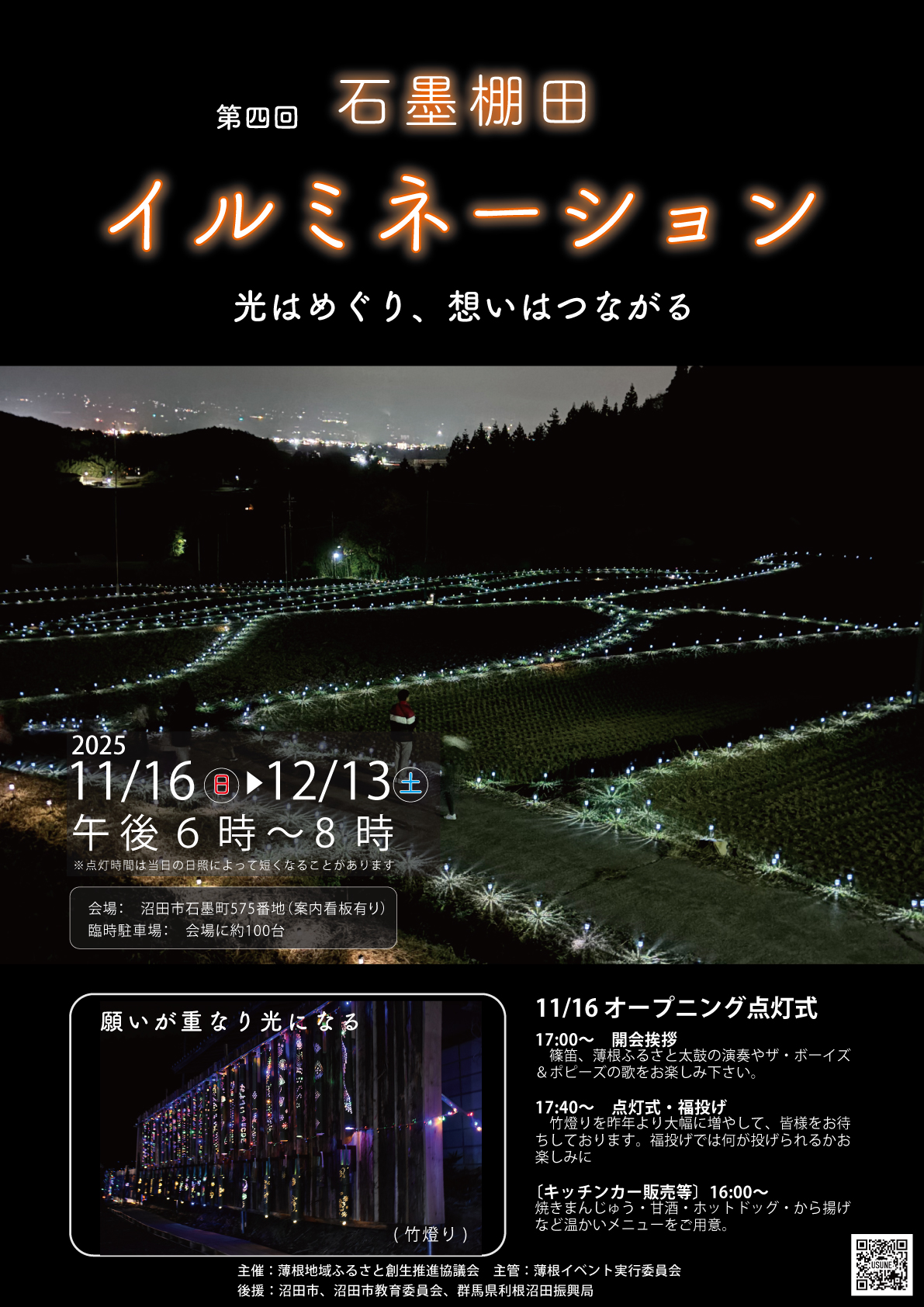沼田市石墨町で、11月16日(日)から12月13日(土)まで「第四回 石墨棚田イルミネーション」が開催されます!